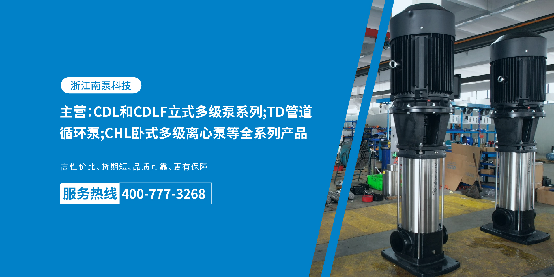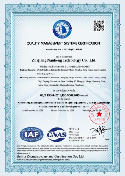 浙江南泵科技有限公司 是一家集科研、制造、銷售、一體化的專業泵類產品專業制造商,致力于給客戶一站式服務。公司主要產品有:CDL立式多級離心泵、CHL臥式多級離心泵、CDLK浸入式多級離心泵、TD管道循環泵、WQ污水污物潛水電泵......公司秉承“質量至上、服務為先”的企業核心價值觀和“誠信為本、共同開拓”的經營宗旨,為廣大客戶提供更好的產品和更優質的服務。企業文化企業愿景:水動力設備定制專家經營宗旨:誠信為本 共同開拓企業精神:認真負責 協作共進  市場觀:讓客戶放心選擇讓服務體現價值品質觀:沒有最好只有更好人才觀:讓合適的人做合適的事品牌觀:高效指引專業提升合作協作觀:目標一致合力共進